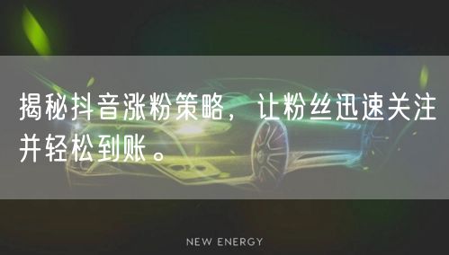 通过以上揭秘的抖音涨粉策略的实践和运用,相信你可以轻松获取粉丝关注并实现快速到账!记住关键是要保持耐心和毅力不断探索和实践适合你的涨粉方法并不断优化和改进自己的策略和技巧。。